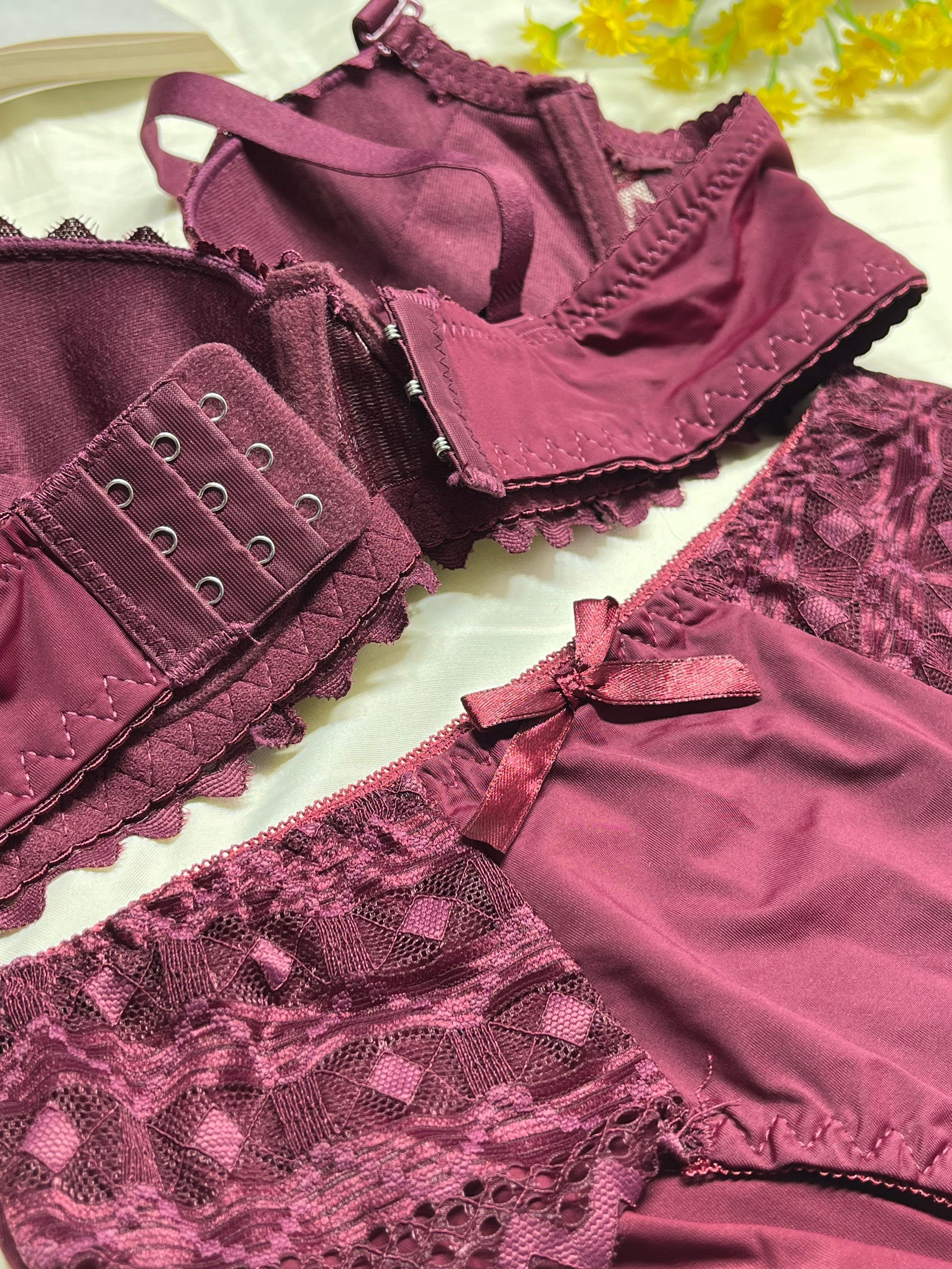 Bra Style: Designed with a supportive push-up structure to enhance your natural shape. The adjustable straps ensure a perfect, comfortable fit for all-day wear. A delicate ribbon bow at the center adds a touch of sophisticated charm.